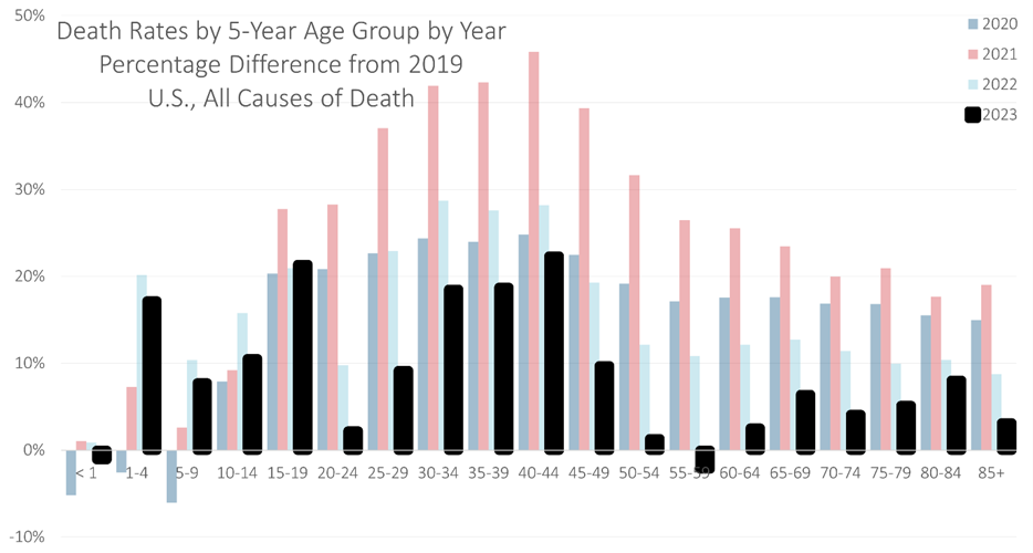 The following chart is from actuary Mary Pat Campbell based upon data from the US Center for Disease Control: